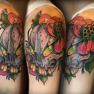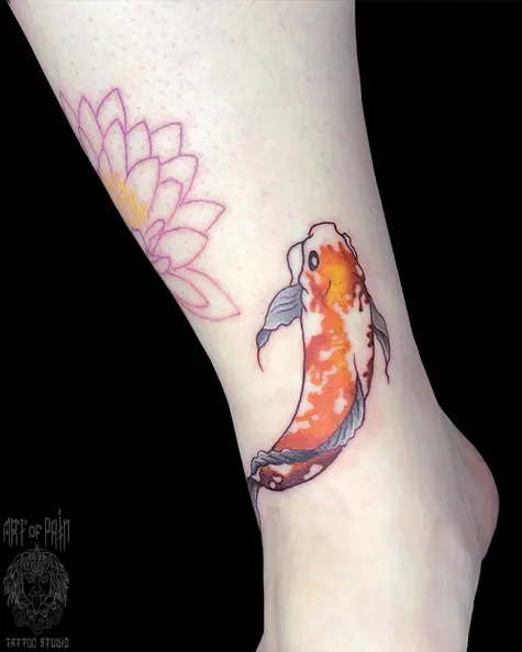 Татуировка женская нью скул на голени карп 5463