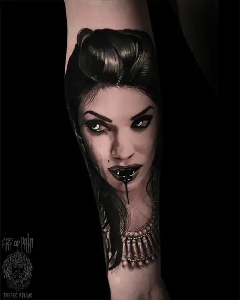 Татуировка женская реализм на предплечье девушка-вампир (Александр Pusstattoo) 5500