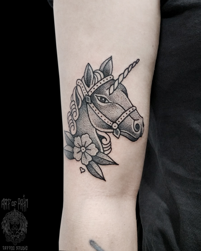 Татуировка женская графика на руке единорог (Николай Орф) 5511