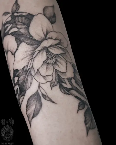 Татуировка женская графика на предплечье большой цветок (Анастасия Родина) 5514