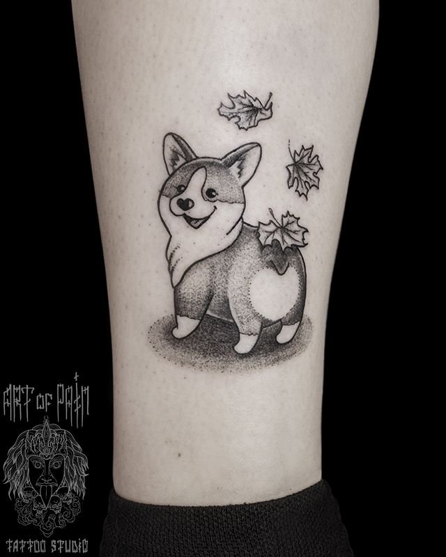 Татуировка женская графика на икре собака 552