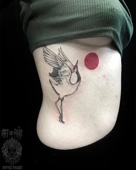 Татуировка женская графика на боку журавль (Мария Котова) 5553