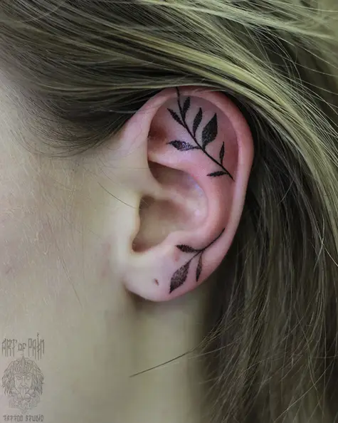 Татуировка женская графика на ухе растение (Надежда Полякова) 5570
