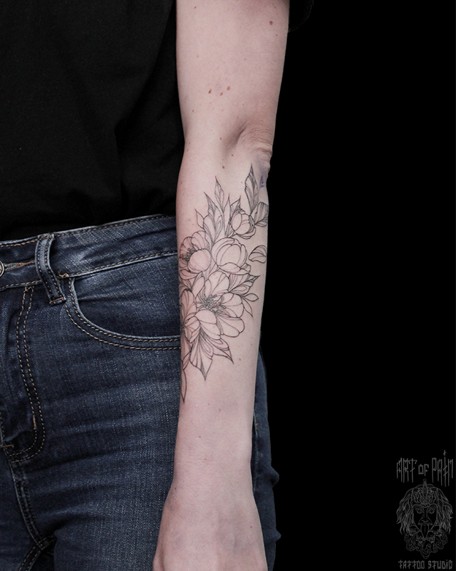 Татуировка женская графика на предплечье бутоны чайной розы 5616