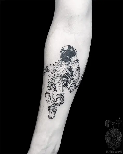 Татуировка женская графика на предплечье космонавт (Мария Котова) 5642