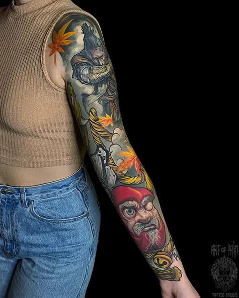 Татуировка женская япония тату-рукав самурай, тигр, дарума 5663