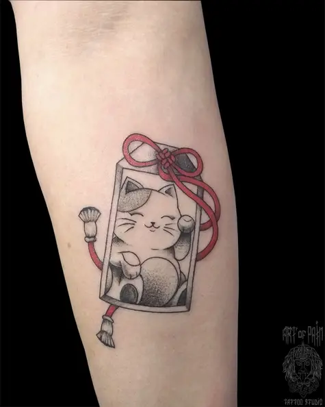 Татуировка женская графика на предплечье японский котик (Анастасия Родина) 5678