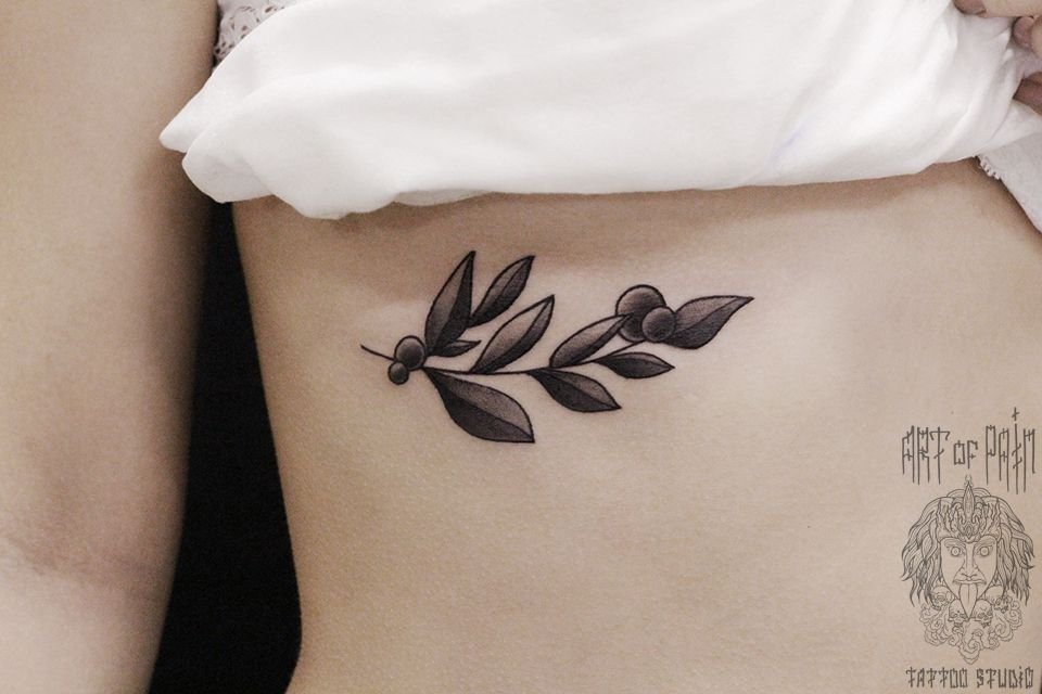 Татуировка женская Black&Grey на ребрах растения 584