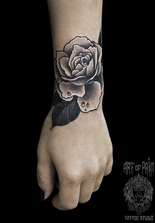 Татуировка женская Black&Grey на запястье роза (CoverUp) 585