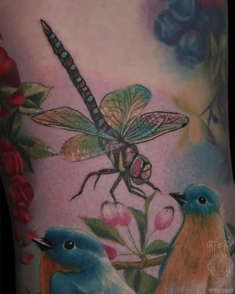 Татуировка женская реализм на бедре стрекоза (Анастасия Родина) 5926