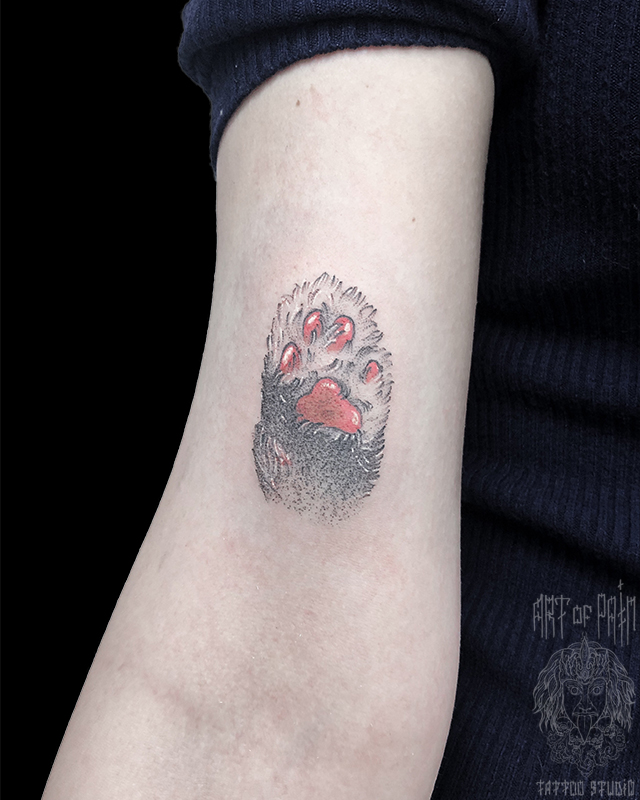 Татуировка женская графика на руке лапка кота (Мария Котова) 5975