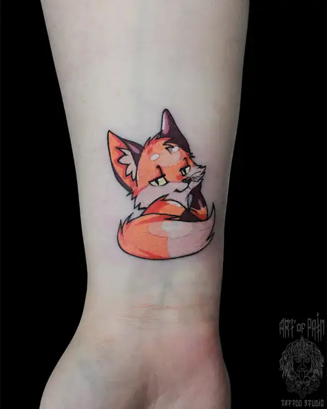 Татуировка женская нью скул на запястье лис (Анастасия Родина) 5996