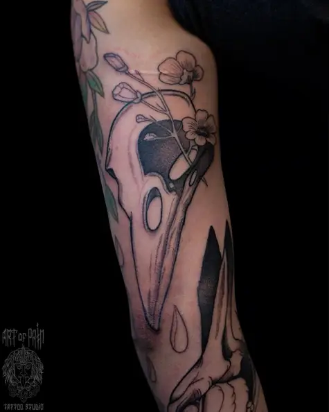 Татуировка женская графика на руке череп и цветы (Кирилл Плотников) 6006