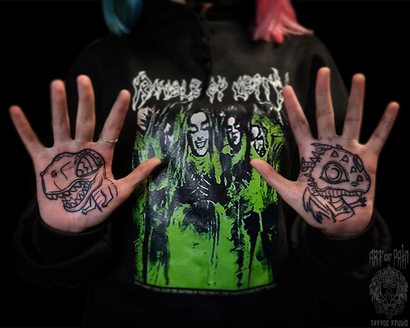 Татуировка женская графика на кисти динозавр и дракон (Кирилл Плотников) 6021