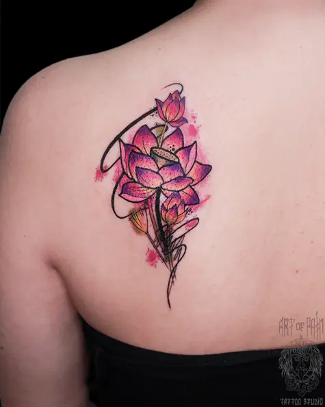 Татуировка женская нью скул на лопатке лотос (Анастасия Родина) 6026