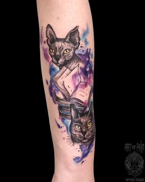 Татуировка женская акварель на предплечье коты 6050