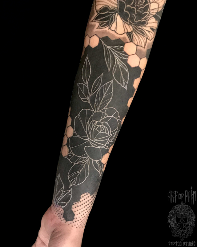 Татуировка женская графика-рукав на предплечье цветы 6074