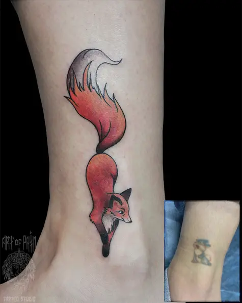 Татуировка женская нью скул на щиколотке лиса кавер (Анастасия Родина) 6105
