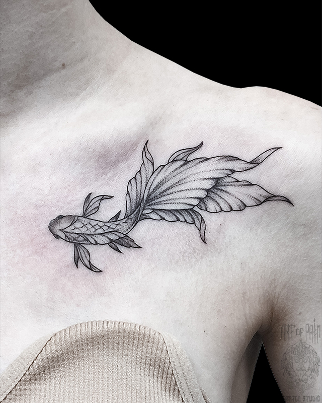 Татуировка женская графика на ключице рыба (Мария Котова) 6144