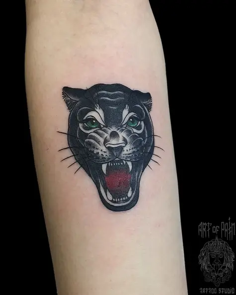 Татуировка женская олд скул на предплечье зеленоглазая пантера (Анастасия Родина) 6147