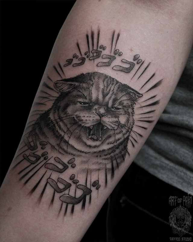 Татуировка женская графика на предплечье кот 6153