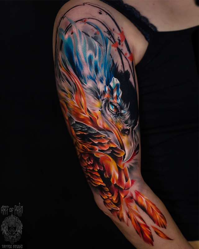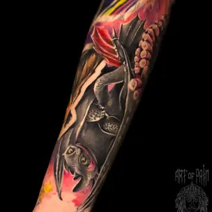 Татуировка женская реализм и нью скул тату-рукав птица (Дмитрий Шейб) 6193