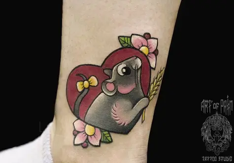 Татуировка женская олд скул на икре животные 623