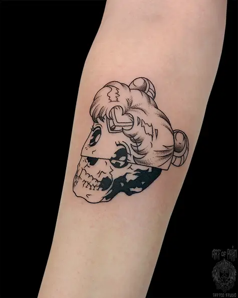 Татуировка женская графика на предплечье аниме (череп) (Евгения Шмидт) 6257