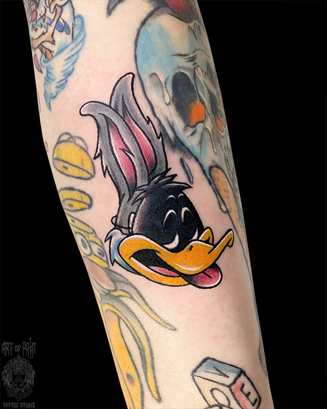Татуировка женская нью скул на предплечье Багз Банни Даффи Дак (Евгения Шмидт) 6294