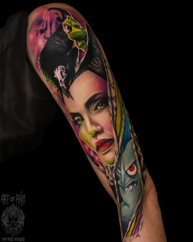 Татуировка женская реализм на руке Малефисента и Аид (Дмитрий Шейб) 6303