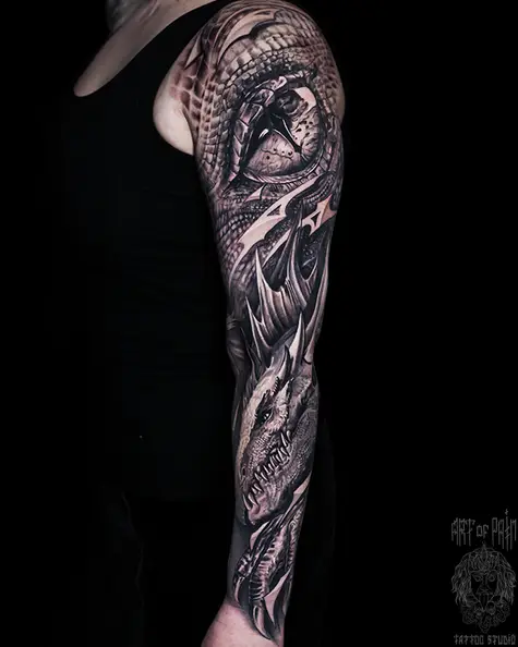 Татуировка женская фентези тату-рукав драконы (Слава Tech Lunatic) 6331