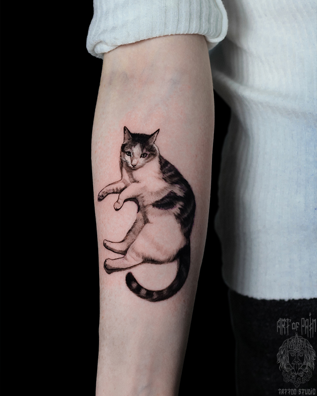 Татуировка женская реализм на предплечье черно-белый кот (Анастасия Юсупова) 6348