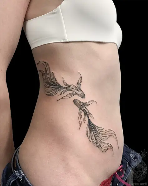 Татуировка женская графика на боку рыбы 6356