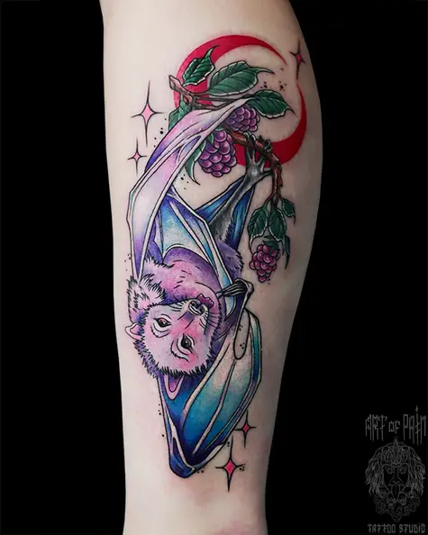 Татуировка женская на голени летучая мышь (Анастасия Родина) 6377