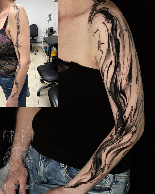 Татуировка женская графика на руке узор (перекрытие старой тату) (Дмитрий Шейб) 6449