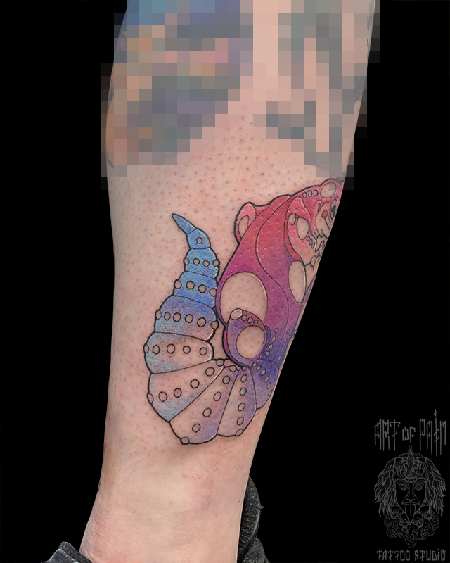 Татуировка женская графика и акварель на голени хвост ящерки 6457