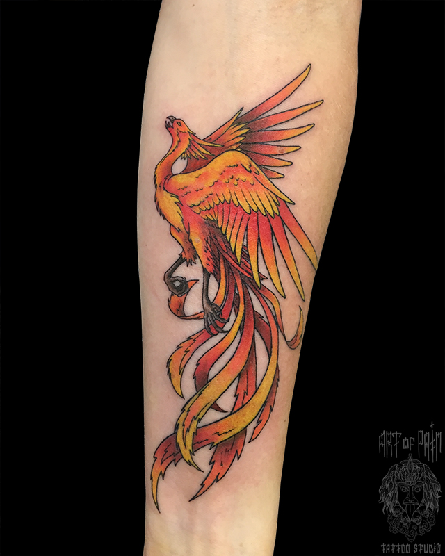 Татуировка женская нью скул на предплечье феникс (Анастасия Родина) 6459