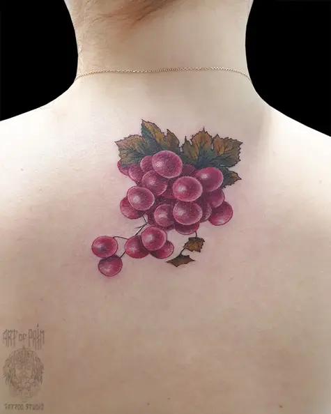 Татуировка женская реализм на спине виноград (Анастасия Родина) 6464