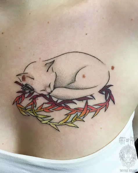 Татуировка женская графика на груди кот (Анастасия Родина) 6526