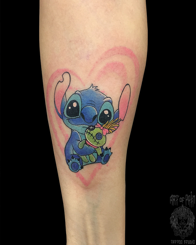 Татуировка женская нью скул на предплечье Стич (Анастасия Родина) 6529