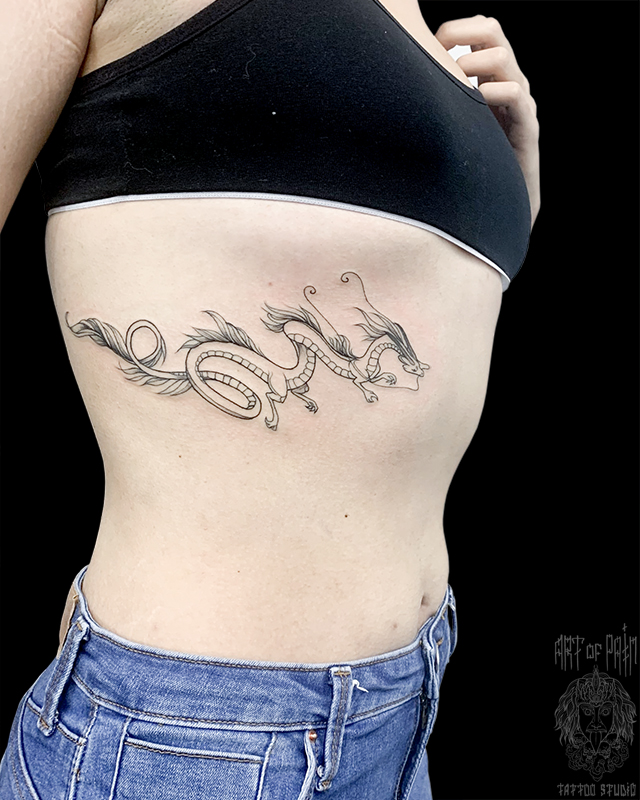 Татуировка женская графика на боку Хаку 6684