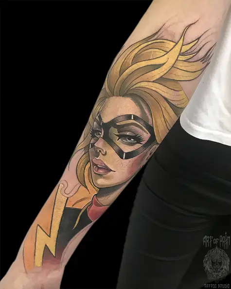 Татуировка женская нью скул на предплечье девушка 6693