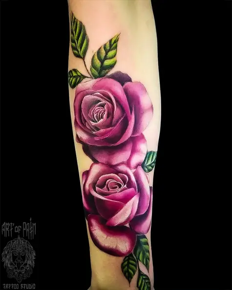 Татуировка женская реализм на предплечье две сиреневые розы 6713