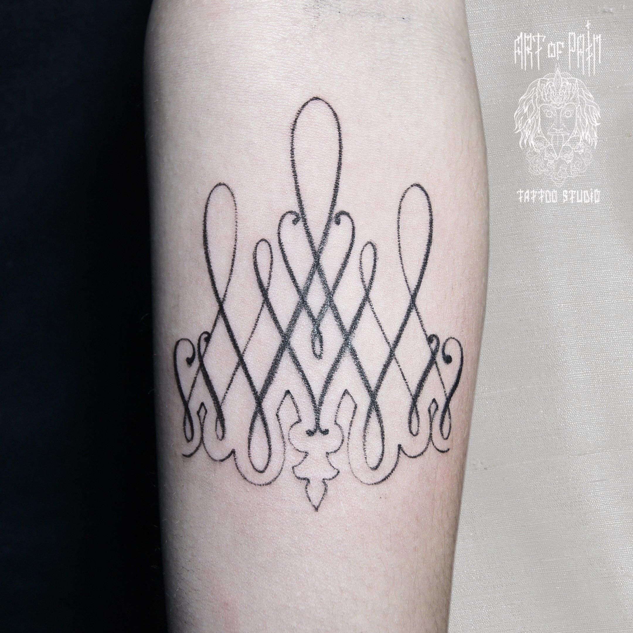 Татуировка женская графика на предплечье симметричный узор 679