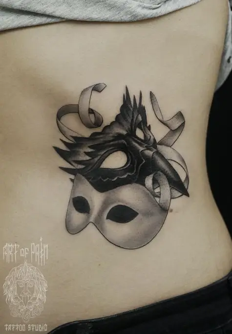 Татуировка женская Black&Grey на ребрах маски 686