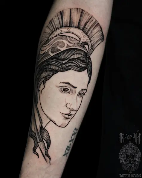 Татуировка женская графика на предплечье Афина (Надежда Полякова) 6967