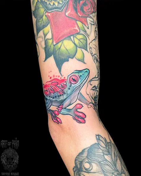 Татуировка женская нью скул на руке ящерица 7022