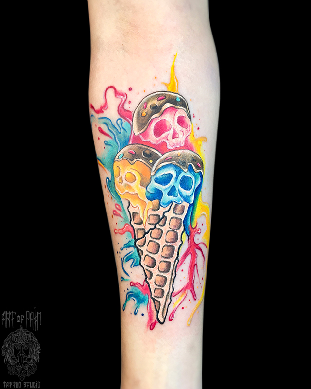 Татуировка женская нью скул на предплечье мороженное черепа 7024