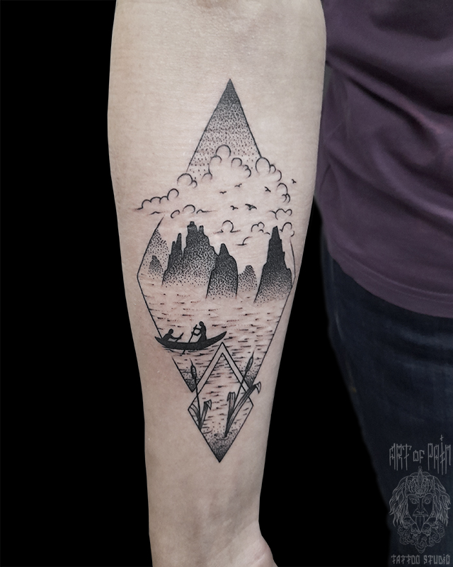 Татуировка женская графика и дотворк на предплечье пейзаж (Николай Орф) 7061