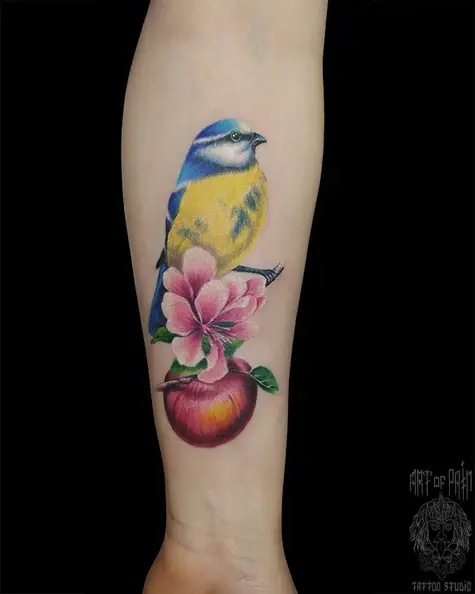 Татуировка женская реализм на предплечье синица (Анастасия Родина) 7081